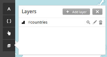 In this screen we have a writing zone and a dropdown list. The dropdown list contains all the possible layers to query. When we select a layer TileMill shows us which Moustache tags we can use. (Let’s stop here. Moustache tags! That’s an awesome name!).