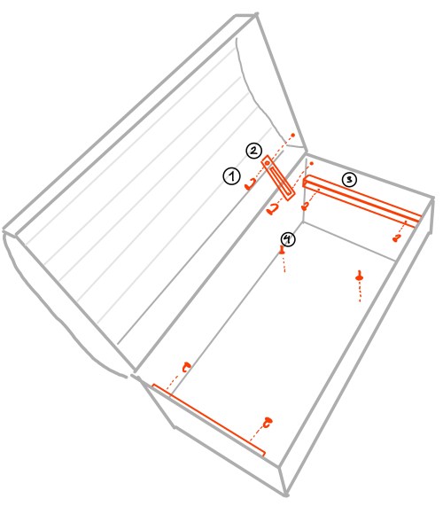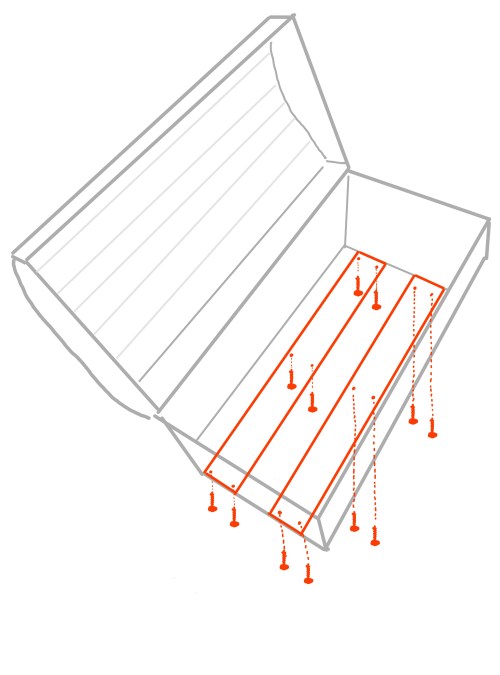 I use two screws for each wood bar (and a couple of flat washers to protect the fabric), securing the whole sides a little more since there are at least two sides with screws holding everything tight. Again be wary of the screw length, so it does not reach the chest exterior metal sheet.